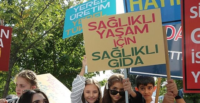 Sağlıklı Gıda Şenliği” çocukların kortej yürüyüşü ile başladı. Ellerindeki dövizlerle slogan atan çocuklar, sağlıklı gıda ve gıda israfına dikkat çeken mesajlar kullandı. Kortej yürüyüşünün ardından açılış konuşmaları yapıldı.